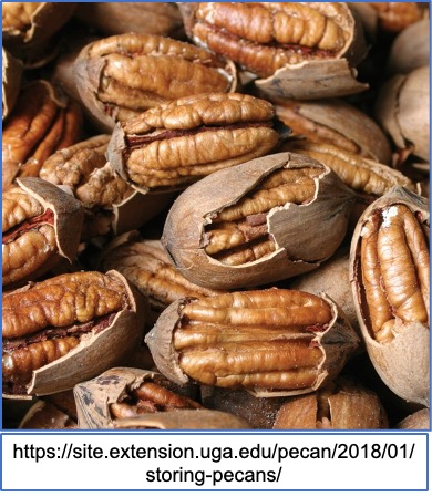 Finally, when pecans do begin to fall, harvest them quickly from the ground. Pecans left on the ground after a few days will mold quickly due to excessive moisture from the soil. Dry freshly harvested pecans inside your home before you try to store them. This could be accomplished by laying them out in shallow boxes or hanging them in porous burlap bags. Pecans can be stored at 32-degree Fahrenheit for about a year or longer if frozen. Pecans will spoil if not stored properly.